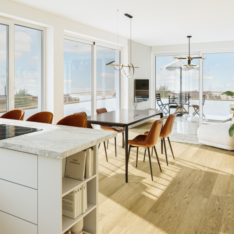 Die Wohnungen überzeugen durch hohen Komfort mit Fußbodenheizung und Kühlung in allen Räumen, dreifach verglasten Fenstern, elektrischen Rollläden sowie moderner, individuell regulierbarer Haustechnik.
